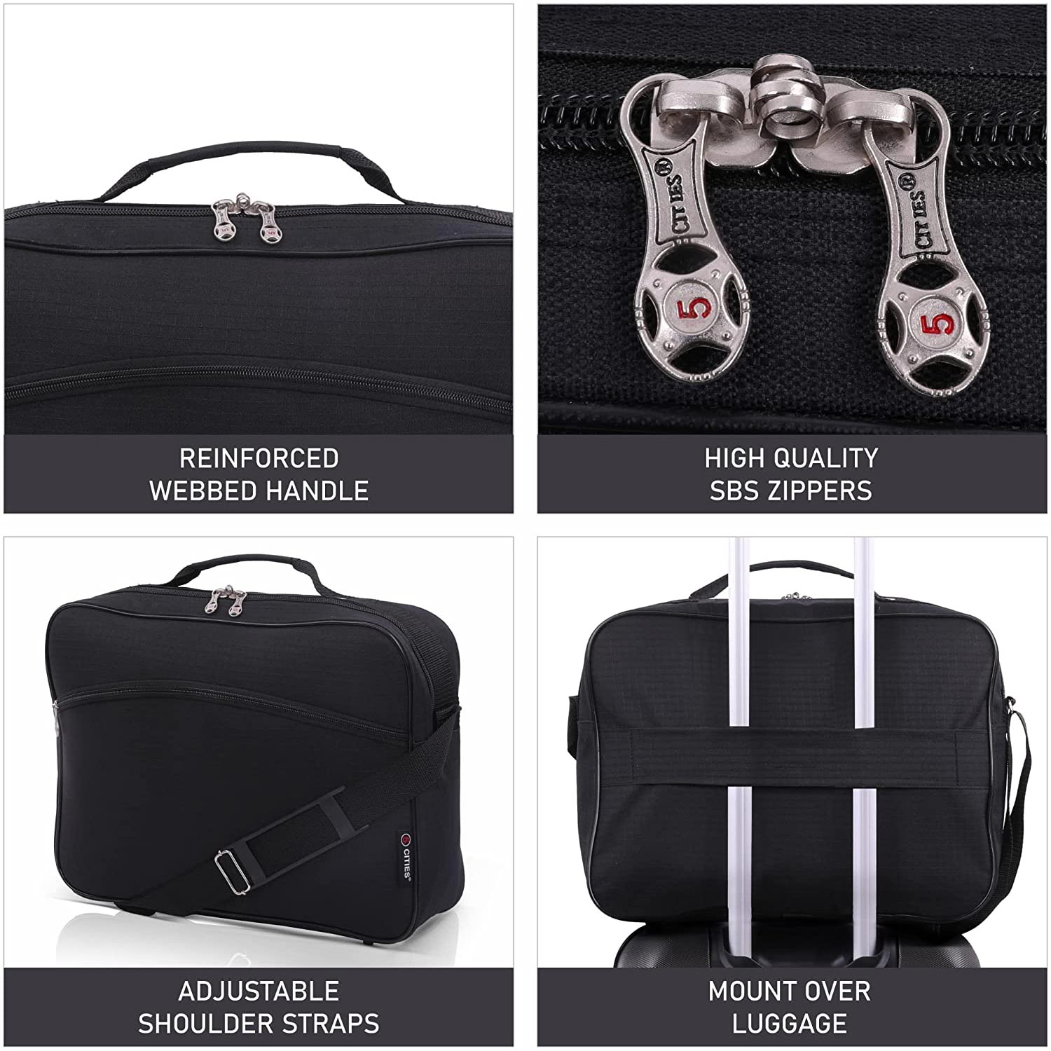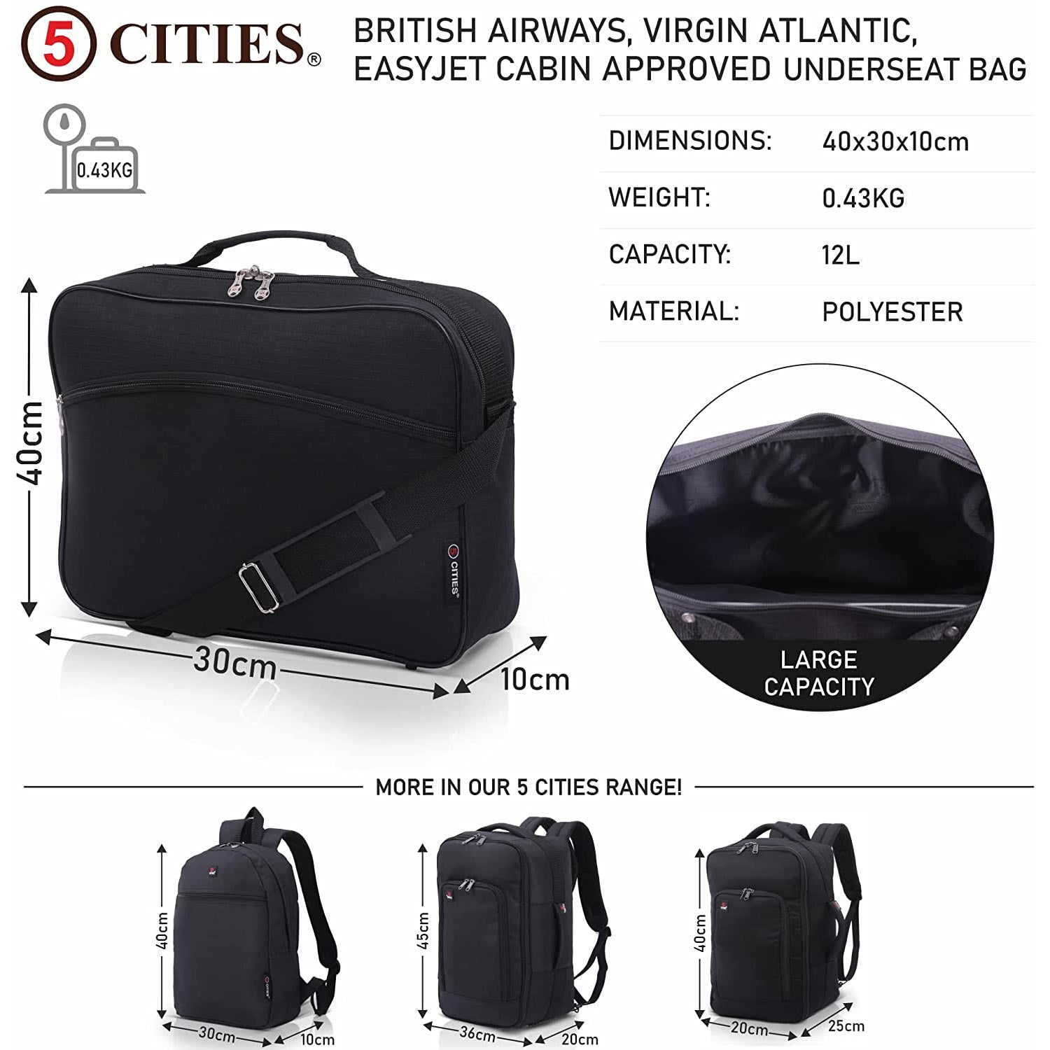 5 CITIES (40x30x10cm) Lufthansa Maximale New and Improved 2025, British Airways, Virgin Atlantic, EasyJet Reisetasche für Kabinengepäck unter dem Sitz, Schwarz