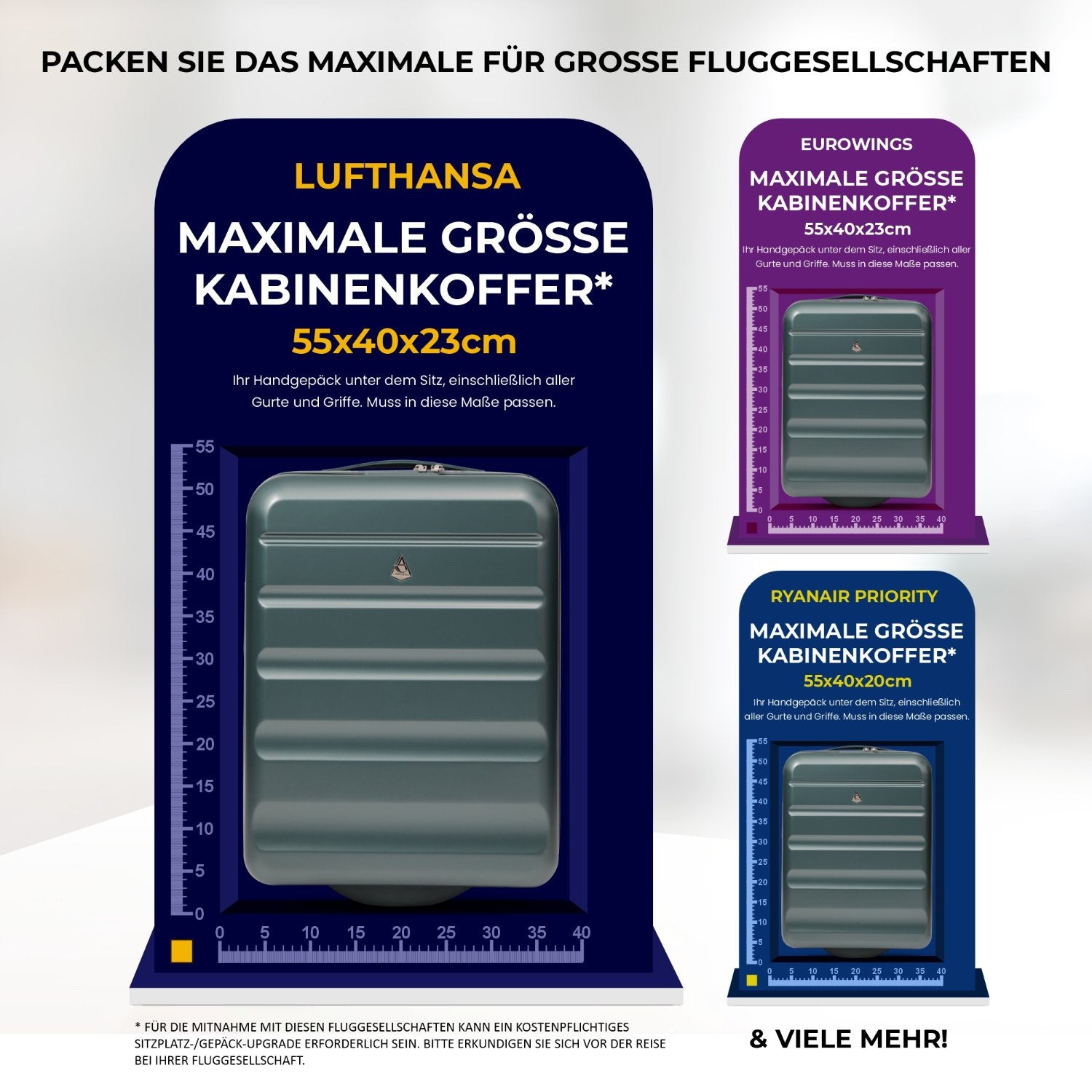 • Erweiterbares Design für Lufthansa & Wizz Air Priority (55x40x23cm): Der spezielle Erweiterungsreißverschluss vergrößert den Koffer auf 55x40x23cm und bietet damit ein Fassungsvermögen von bis zu 46 Litern. Ideal für Lufthansa- und Wizz Air Priority-Kabinen sowie andere Airlines mit größeren Gepäckgrenzen.