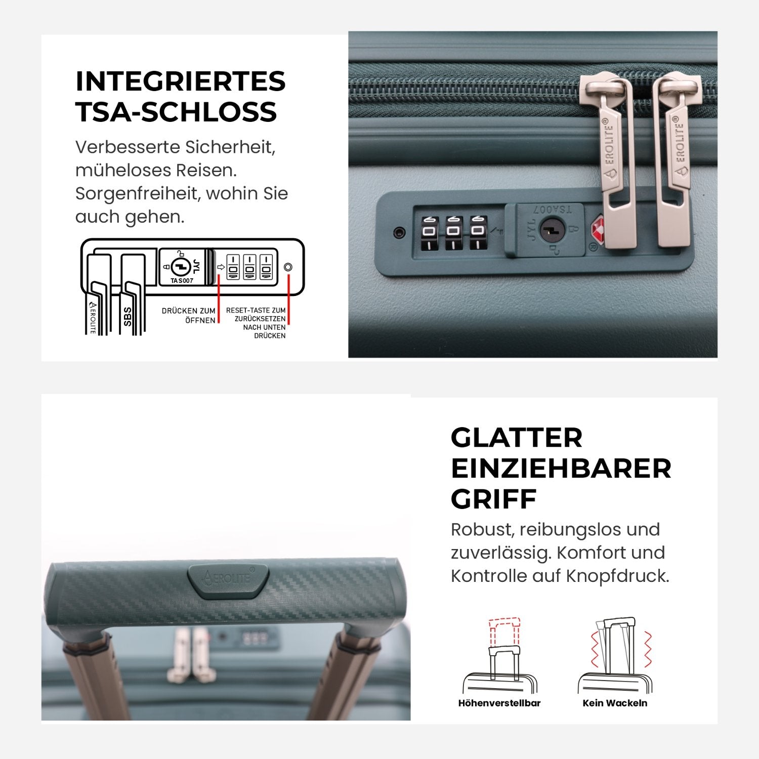 • TSA-zugelassenes Schloss: Das integrierte TSA-Kombinationsschloss schützt Ihr Gepäck und ermöglicht Sicherheitskontrollen am Flughafen ohne Beschädigung.