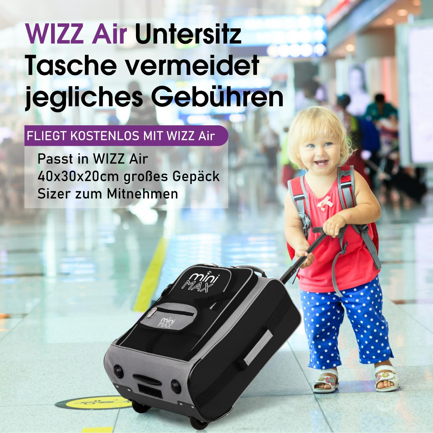 - PERFEKT FÜR RYANAIR & WIZZ AIR – Diese Rolltasche passt, wenn sie nicht überfüllt ist, perfekt in die neue kostenlose Handgepäckgrenze von 40x30x20cm bei Ryanair und Wizz Air. So können Sie nahezu das Maximum einpacken, ohne zusätzliches Gepäck kaufen zu müssen. Sie ist außerdem zugelassen bei Lufthansa, Jet2, KLM, British Airways, Virgin Atlantic und vielen weiteren Fluggesellschaften! Maße: 40x30x20cm (alle Teile) | Gewicht: 1,45kg | Volumen: 20L. WICHTIG: Bitte stellen Sie sicher, dass Ihre Tasche beim Boarding nicht überfüllt ist, da die Tiefe sonst 20cm überschreiten könnte.
